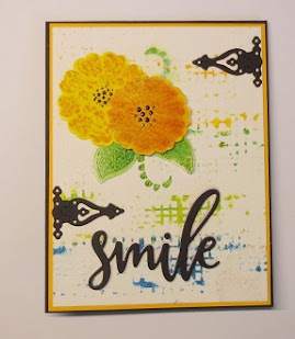 The background is a spritzed layer of a stencil I used with The Crafters Workshop stencil butters by Ken Oliver. The colors came through metallic shimmery even on the spritzed version. It makes a nice background for these Bold and Blooming flowers from Gina K Designs. I found the hinges pre-cut in a stash of things on the corner of my desk and they seemed to fit a garden theme. Entering this into Gina K Designs June 2021 challenge to make your own background.